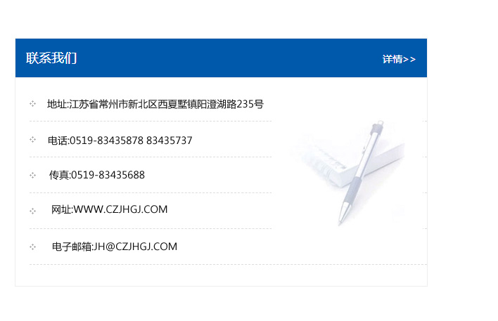 地址:常州市新北區友邦商務大廈1幢16、17層  電話:0519-85101652  傳真:0519-85112595  郵編:213022  網址:www.cz-jiayue_cn.taishundj.com  郵箱:xiajifengaa@163.com